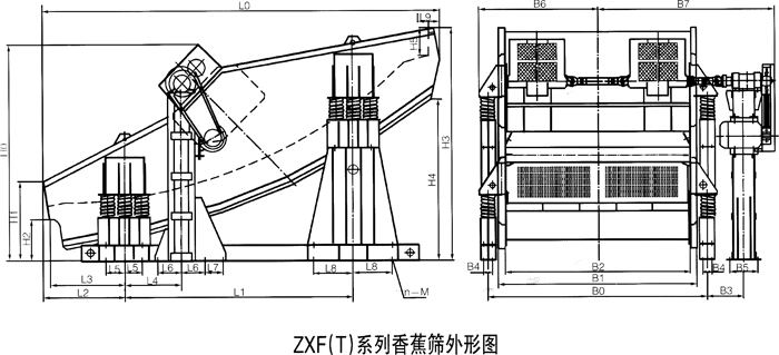 ZX香蕉形直線振動(dòng)篩基本特性及安裝尺寸