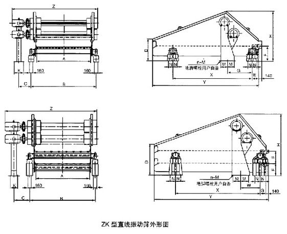ZK型直線振動篩技術(shù)性能及安裝尺寸